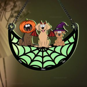 Halloween With Dogs Cats Babies – Personalized Window Hanging Luminous Ornament