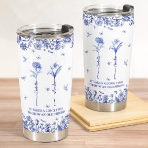 God Says I Am Name Letter In Bible Birth Flower Toile De Jouy Style – Personalized Tumbler Cup