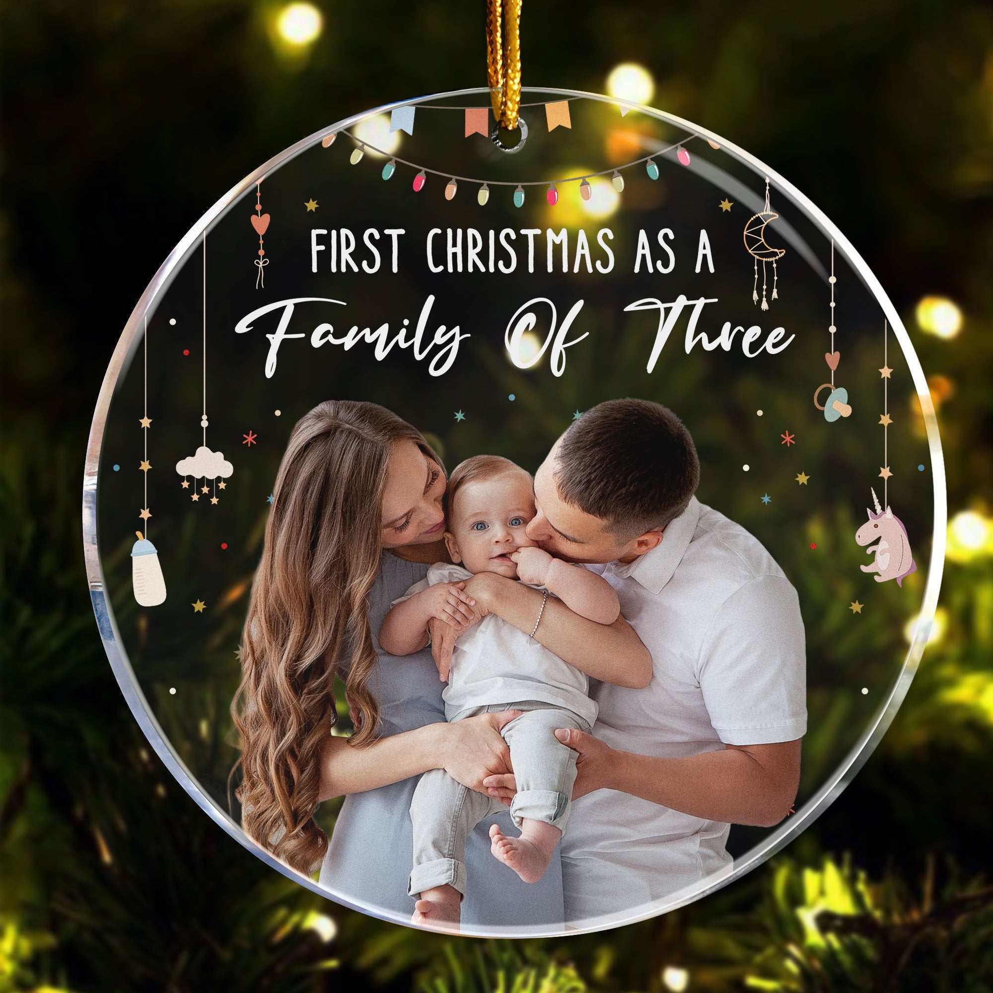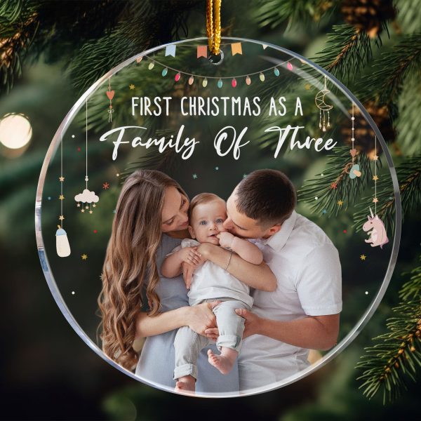 Commemorate your journey into parenthood with the ‘Baby First Christmas As A Family Of Three – Personalized Photo Acrylic Ornament’ This heartfelt ornament celebrates your family’s first holiday season as a trio, embracing the joy and love that accompanies parenthood. Capture the essence of this milestone with a personalized ornament that symbolizes unity and warmth. Whether it’s the ‘First Christmas As Mommy’ or ‘First Christmas As Daddy,’ this ornament marks the beginning of cherished traditions. It’s also a delightful way to announce your Xmas baby, adding an extra layer of excitement. With customization options, make this ornament uniquely yours. A thoughtful keepsake for your family, this ornament encapsulates the essence of this remarkable time. Hang it proudly on your tree and treasure the memories as your family grows, making each holiday season even more special.