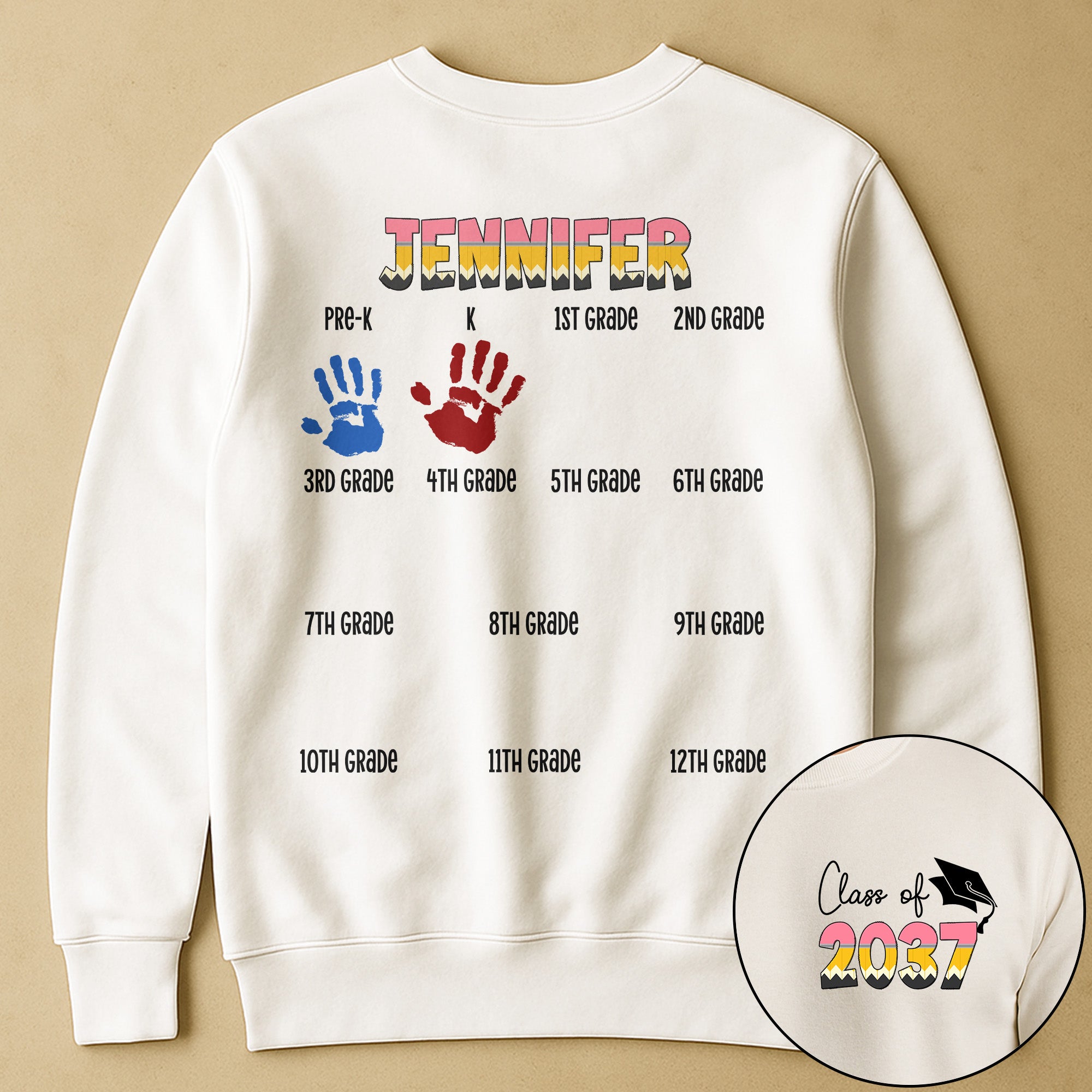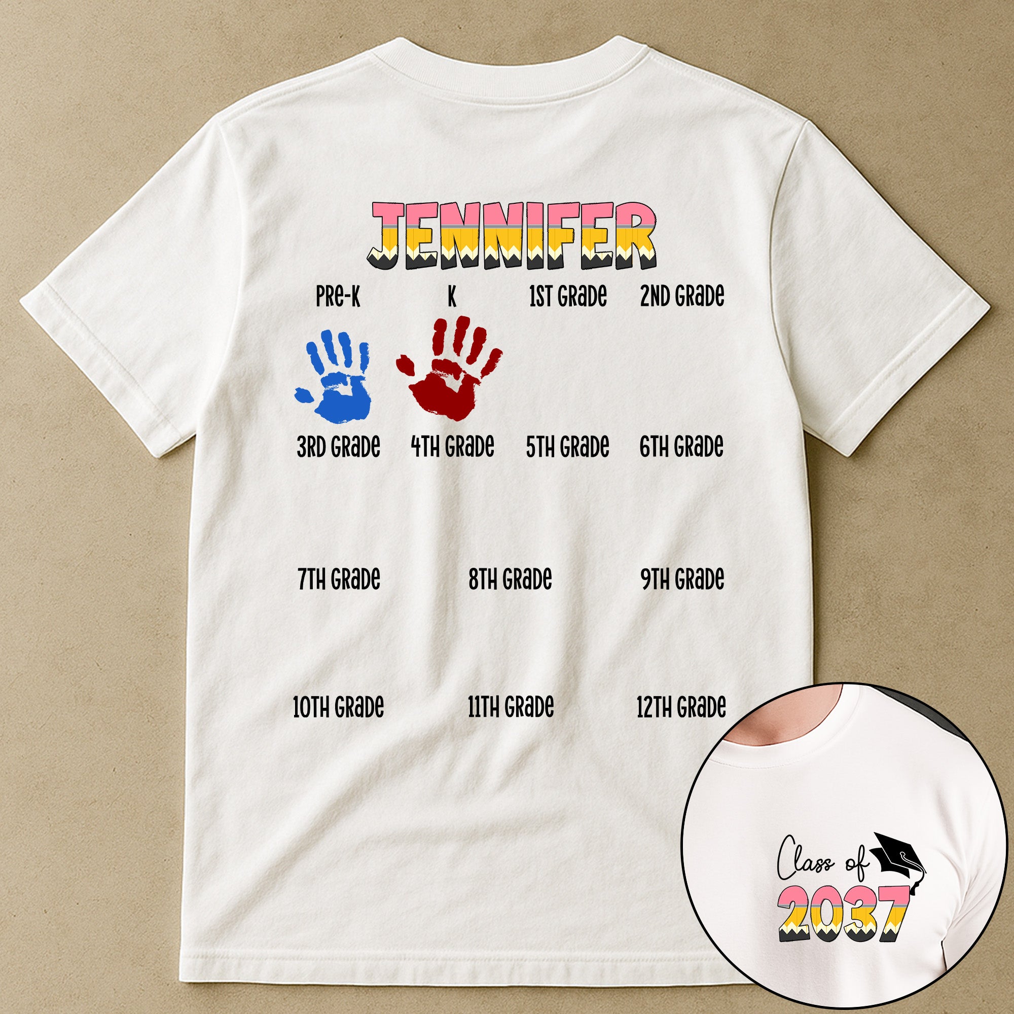 Back To School Grow With Me Grad Handprint For Preschool To 12th – Personalized Shirt