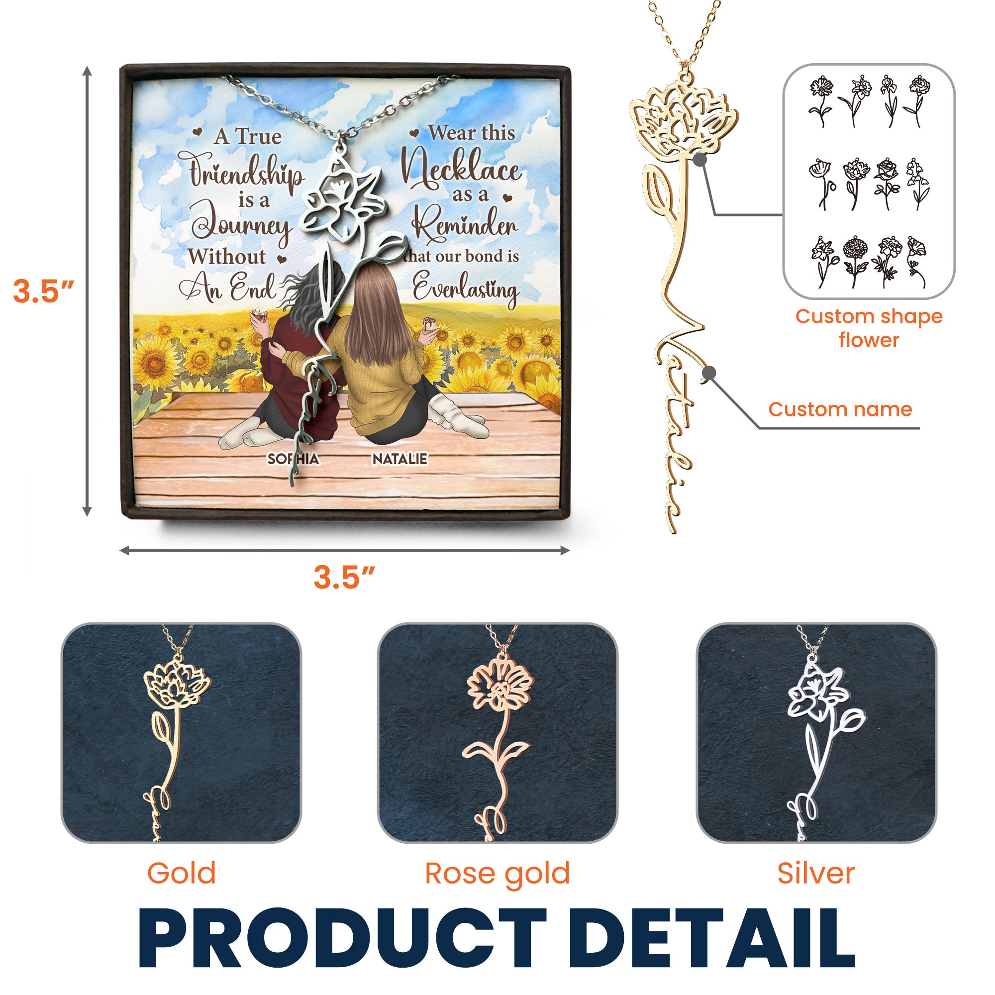 Celebrate the special bond you share with your friends or sisters with this elegant Custom Name Flower Necklace. This unique necklace is crafted with love, featuring a delicate floral design that elegantly incorporates the name of your loved one into the stem of a flower. Each flower represents a personal connection, making it the perfect gift to symbolize your lasting friendship or sisterhood.