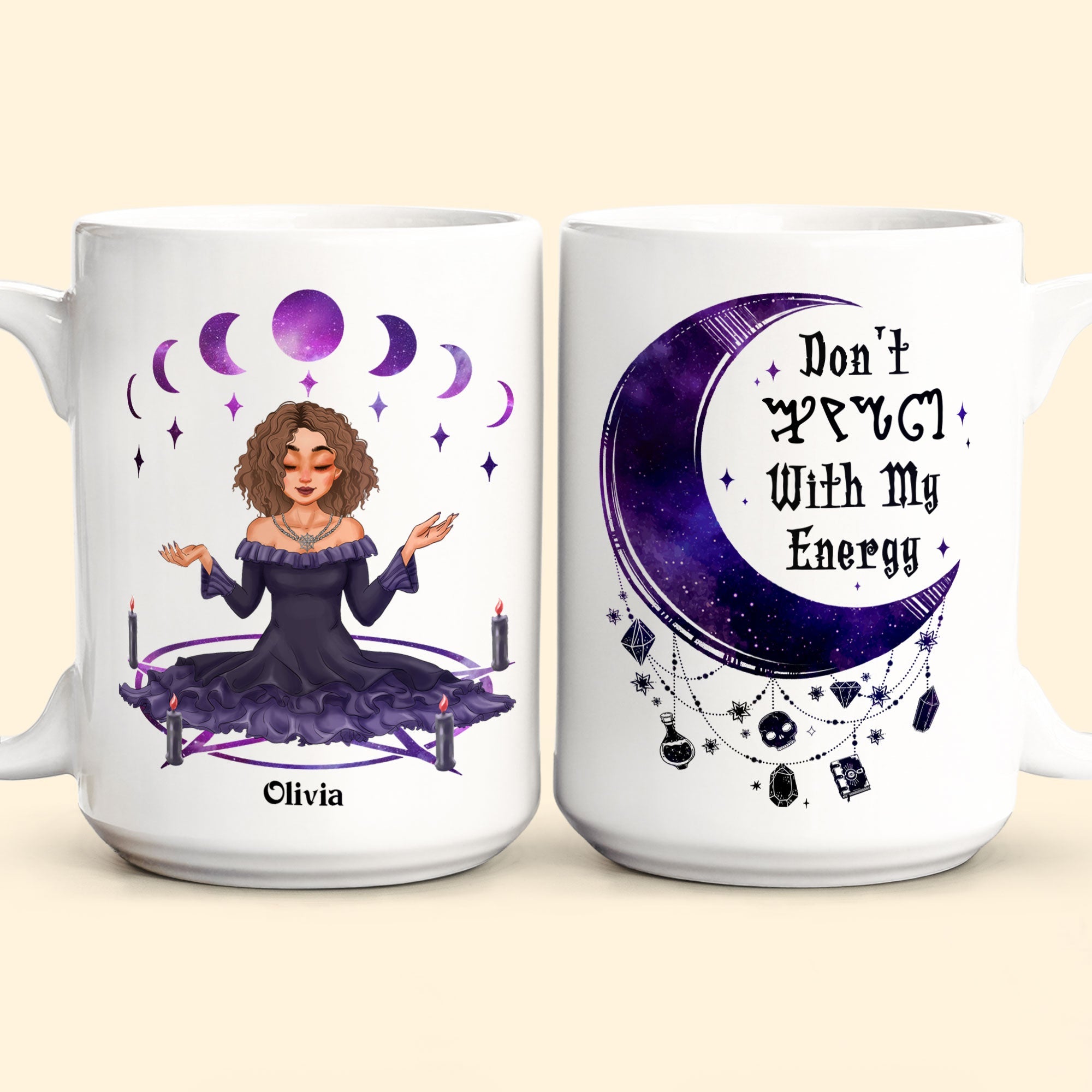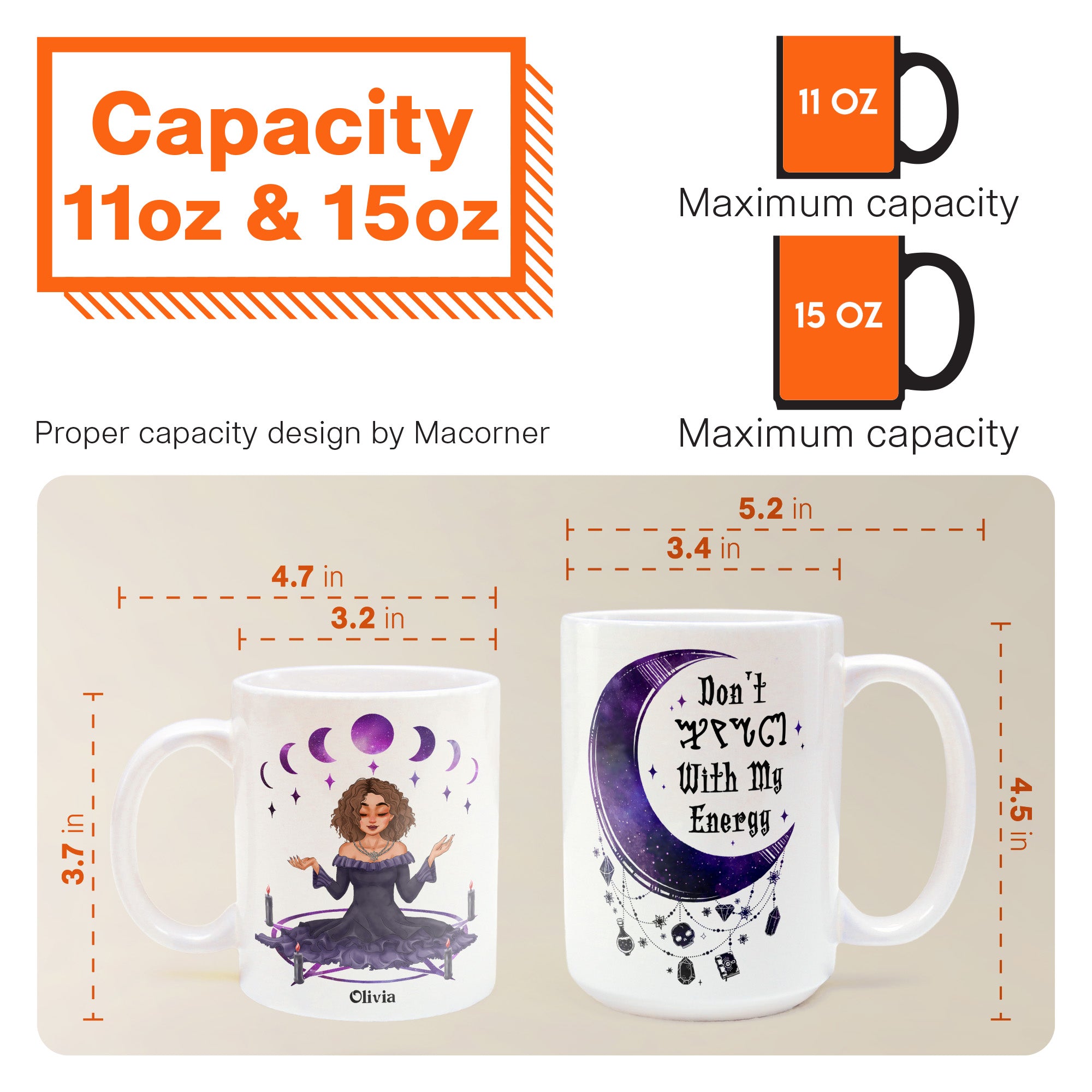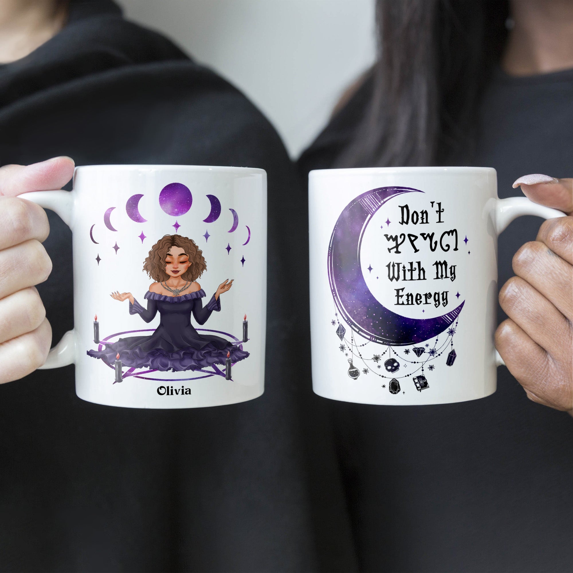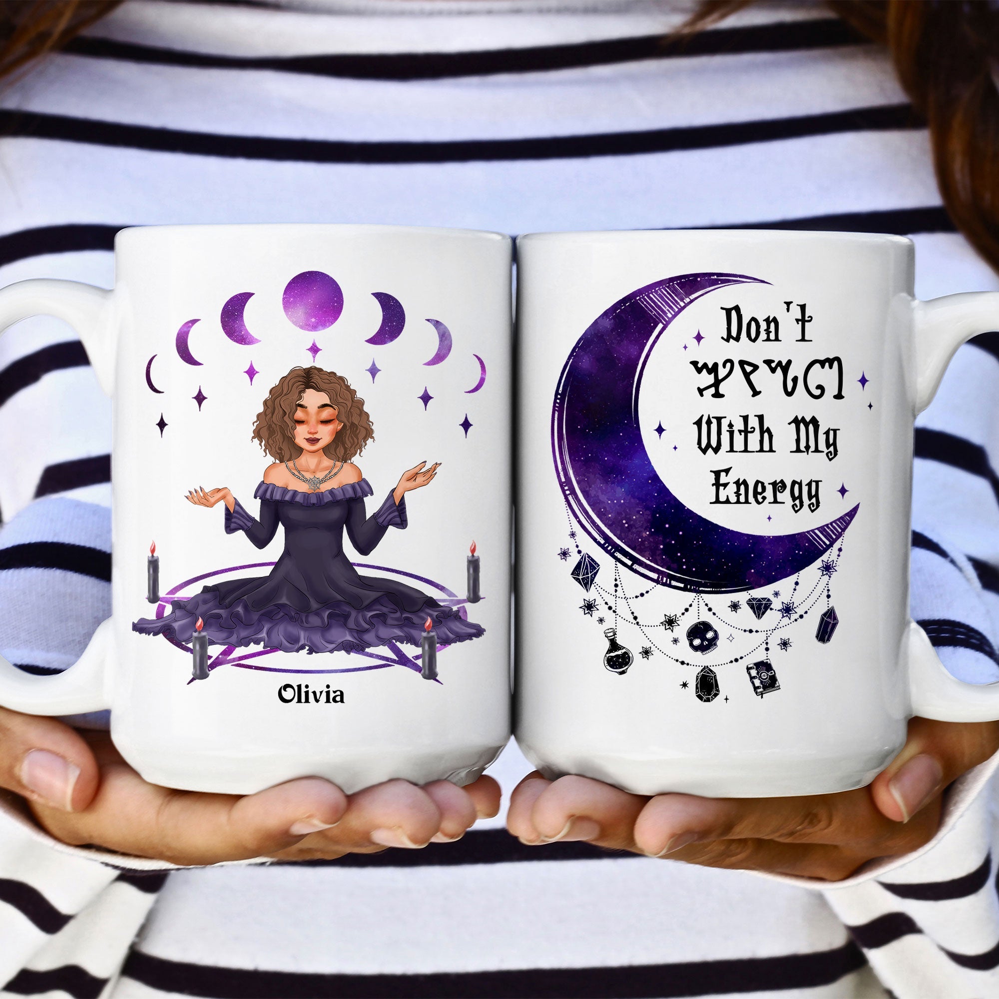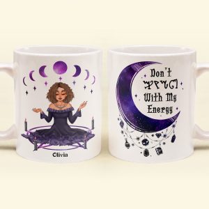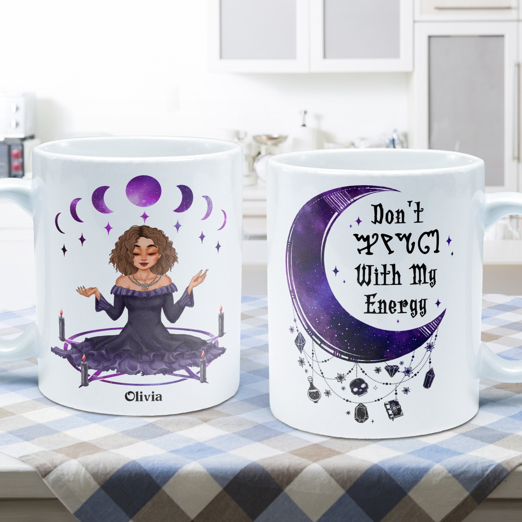 Unleash your inner moon witch with the ‘Don’t Fu*k With My Energy Moon Witchy’ Personalized Mug. This bewitching mug is the perfect gift for her, showcasing a mystical moon design. Whether you’re into witchcraft or simply embrace a witchy vibe, this mug is sure to resonate with your energy. Use it as a travel mug or for your daily brew, reminding everyone to respect your magical boundaries. Add a personal touch with customizations, making it a unique and empowering gift. Embrace your witchy side and let this enchanting mug be a symbol of your strength, power, and connection to the mysterious forces of the universe. Perfect gift for best friend, sister, daughter, mother or makes a perfect witchy gift or as your new daily witch coffee mug.