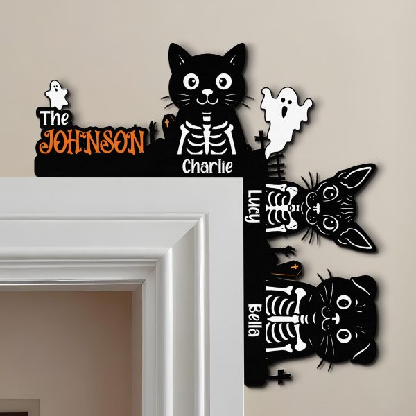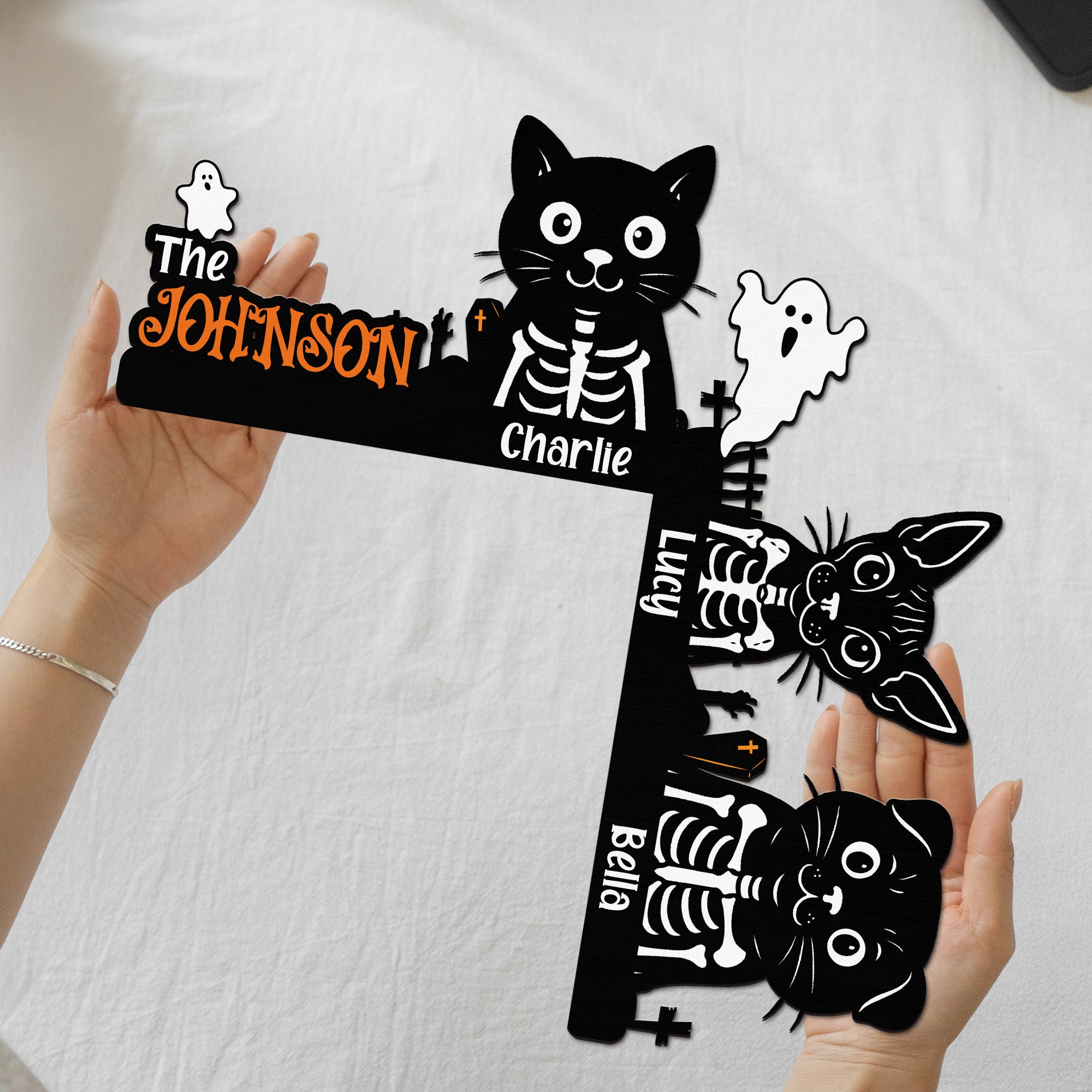 Halloween Skeleton Pet With Custom Family Name – Personalized Door Corner Wood Sign