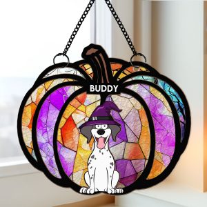 Halloween Time With My Pet – Personalized Window Hanging Suncatcher Ornament