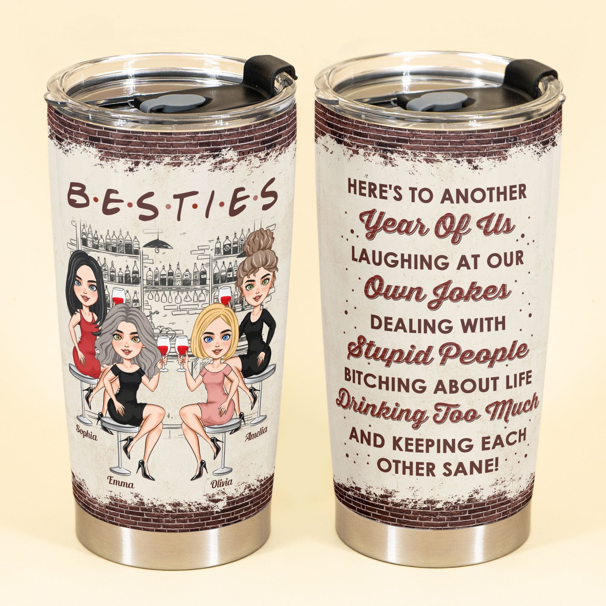 This custom tumbler makes an amazing gift for your BFF or closest confidante. Ideal for birthdays, holidays, or anytime you want to surprise your bestie with a thoughtful present. Give matching tumblers printed with an inside joke for you and your lifelong friend. They also make great gifts for bridesmaids to thank them for their friendship and support on your big day. Coworkers and teammates who’ve become close friends will appreciate customized tumblers to bond over coffee breaks. This unique tumbler is sure to put a smile on your best friend’s face. With its practical design and custom meaningful details, it celebrates the gift of friendship wherever life takes you. Surprise your BFF with this gift that shows how much their companionship means to you.