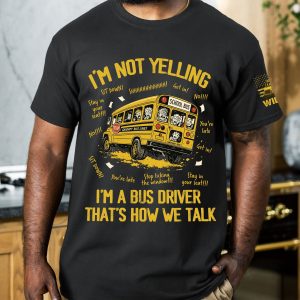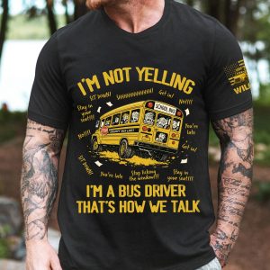 This I’m Not Yelling I’m A Bus Driver That’s How We Talk – Personalized Shirt is perfect for the heroes behind the wheel of every school bus. Featuring a fun, bold design with a cartoon-style school bus and classic driver phrases like “Sit down!”, “You’re late!”, and “Stop licking the window!”, this shirt is sure to get smiles and nods of recognition. It captures the daily chaos and humor of a school bus driver’s life.
