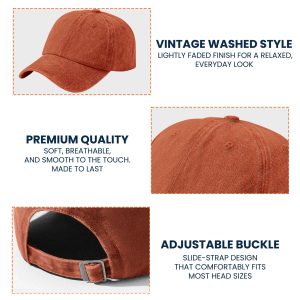 - Material: Crafted from soft, breathable washed cotton, this cap combines comfort with durability.