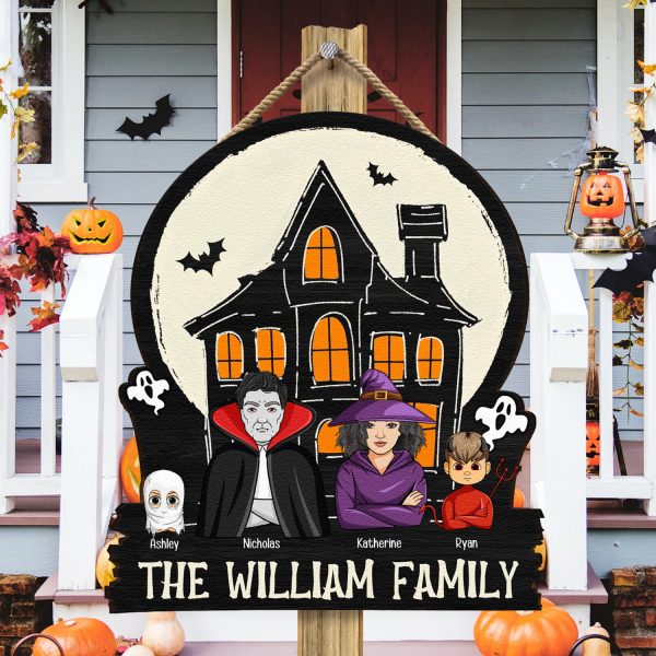 Add a spooky touch to your Halloween decor with the ‘Monster Family In Halloween Haunted Home – Personalized Wood Sign.’ This custom-shaped wood sign perfectly sets the eerie atmosphere right at your doorstep. Featuring a fun and whimsical design, it captures the essence of Halloween with charming monster characters and a haunted home theme.