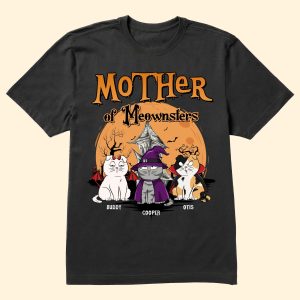 If so, this personalized shirt is perfect for you! This shirt features the text ‘Mother of meownsters’ in a spooky font, along with a cute cat face and some bats. It’s a funny and adorable way to show off your love for your cats and celebrate the Halloween season. You can customize this shirt with your choice of color, size, and cat breeds.