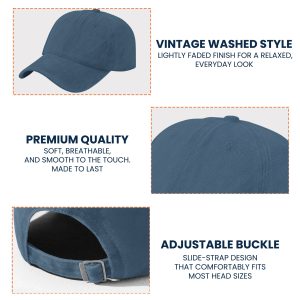 - Material: Crafted from soft, breathable washed cotton, this cap combines comfort with durability.
