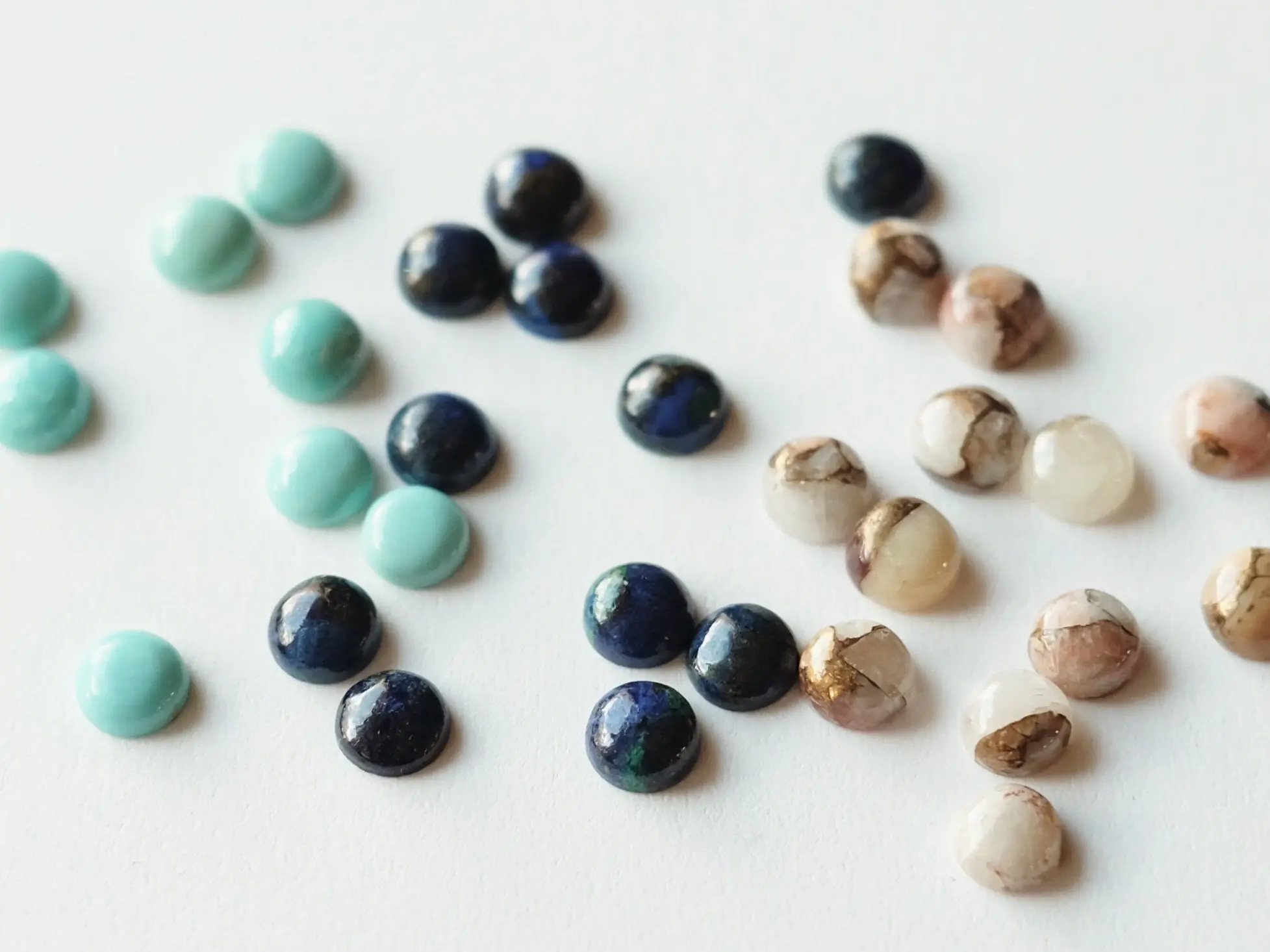 Turquoise, mined in Nevada is a beautiful and consistent robins egg blue.