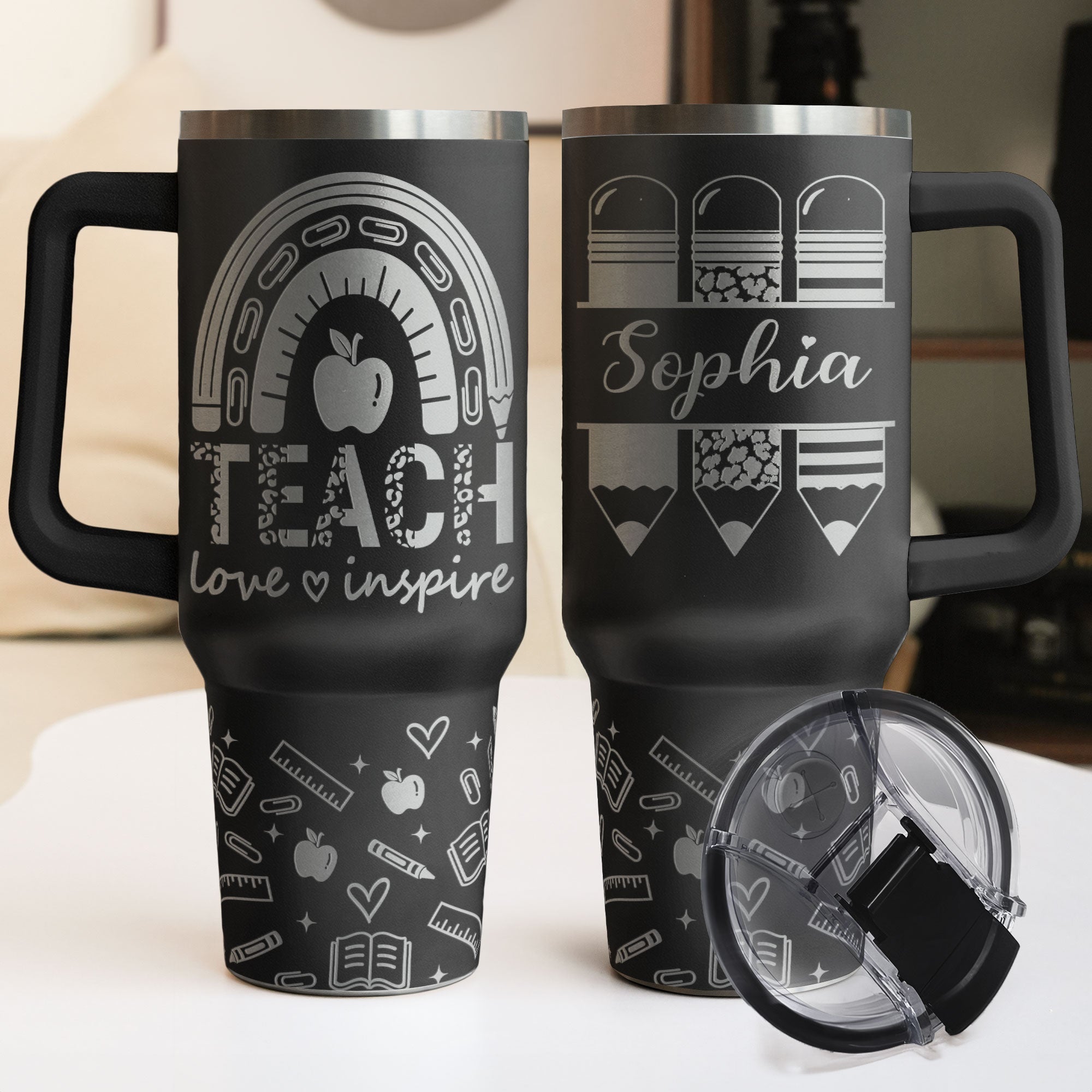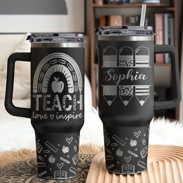 Teachers work hard for their students, and we think that’s pretty great. So we designed this personalized tumbler cup to help you show them how much you appreciate them. This teacher appreciation cup is a loving gift for anyone who works in education, including teachers, school workers, and administrators. This is a fun way to show your favorite teacher just how much they mean to you and it’s also a great way to remind yourself of all the great things they do every day! It’s the perfect gift for teachers on any occasion: holidays, birthdays, teacher’s appreciation week and more!Â