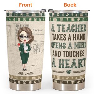 This tumbler makes a meaningful gift to show a teacher you appreciate the impact they make. Customize it with inspirational teacher prints as a daily reminder of the lives they shape. Surprise the new student teacher with their name and classroom number printed on it. Gift it to the math teacher with uplifting quotes. Present it to the veteran 1st grade teacher printed with their classroom rules and motto. With its sleek styling and heartfelt prints, this tumbler makes a thoughtful gift to show a special teacher you appreciate their dedication. It keeps them focused whether teaching in the classroom, online, or on the go. Give it for Teacher Appreciation Week, the holidays, the end of the school year, or any occasion to recognize the impact they make in young lives.