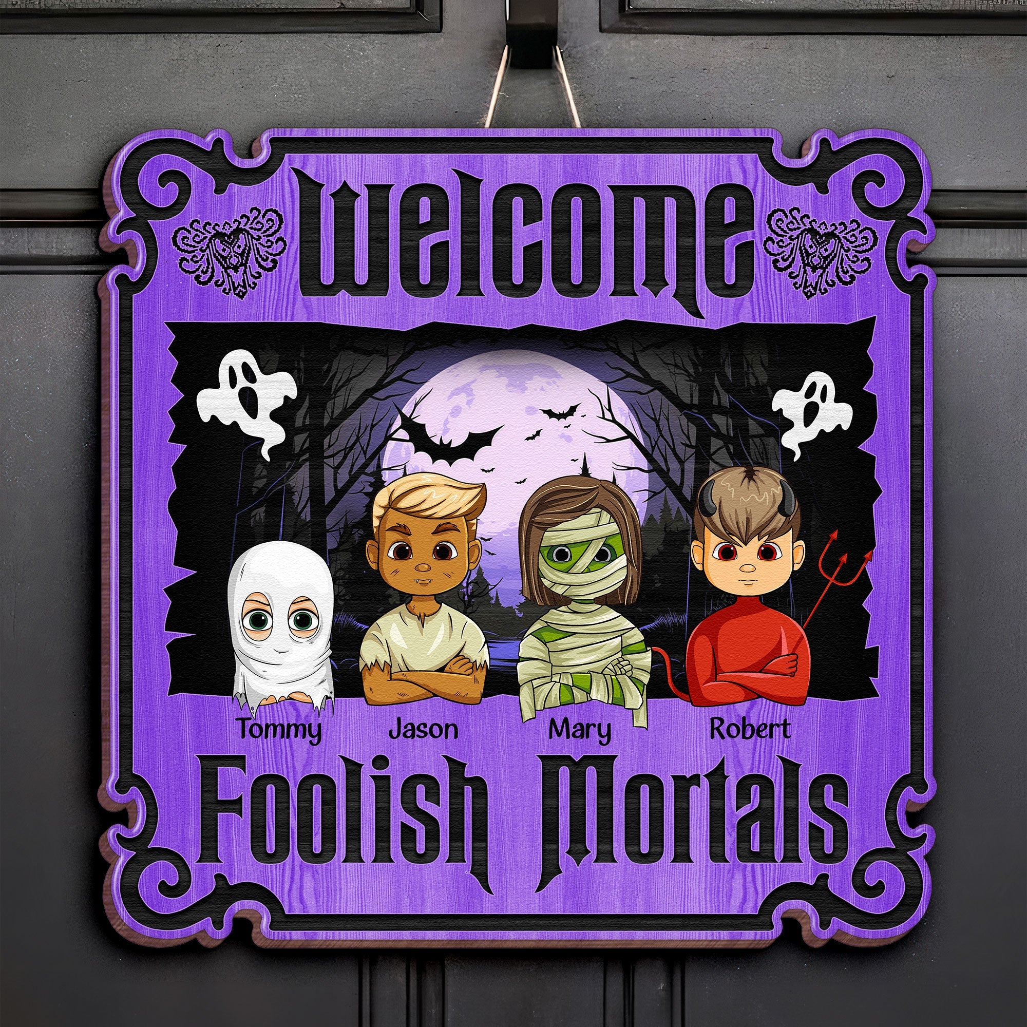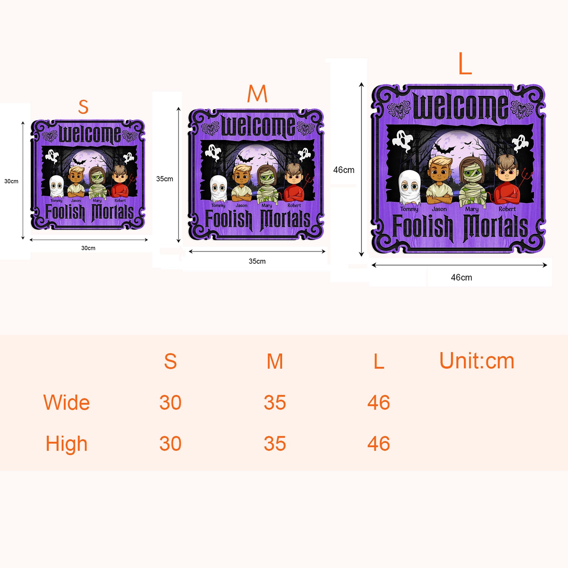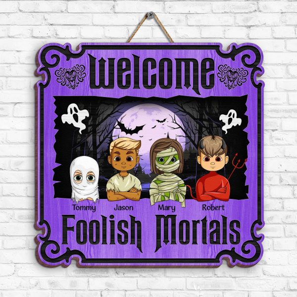Welcome guests to your perfect home with our Welcome Foolish Mortals wood sign which is a special version for Halloween! Ideal for any family with kids. This whimsical sign allows you to proudly display your love for your home right at your door.